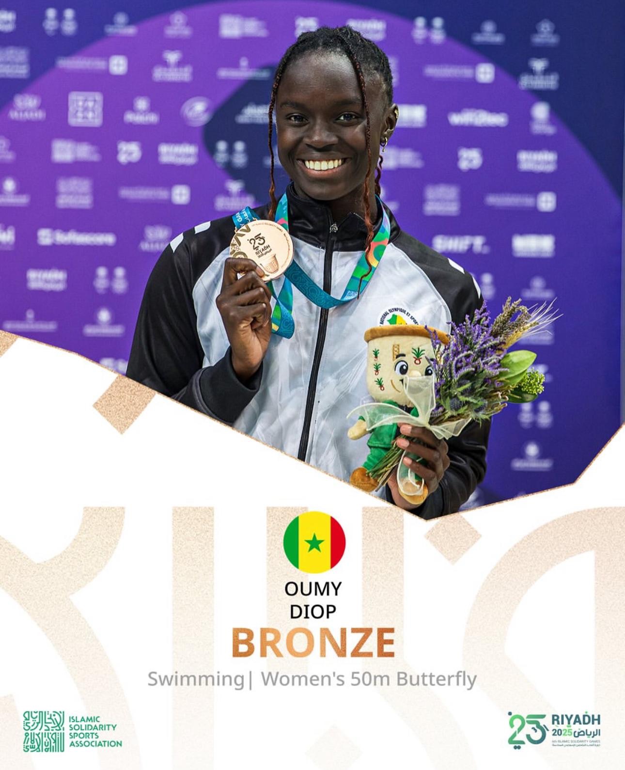La nageuse sénégalaise Oumy Diop poursuit son parcours remarquable aux Jeux islamiques de Riyad 2025. Après avoir offert au Sénégal sa première médaille de bronze sur le 50 m papillon le week-end dernier, la jeune athlète s’est de nouveau distinguée ce mardi matin en se qualifiant pour la finale du 100 m nage libre.